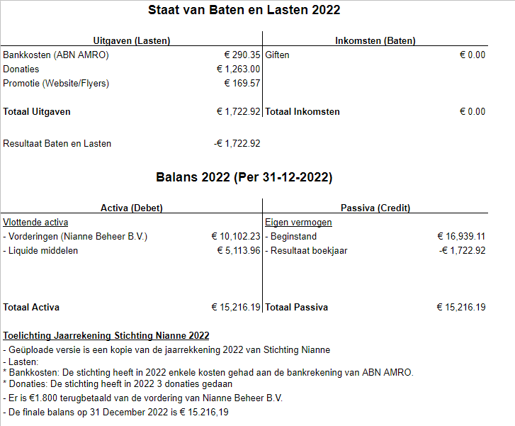 Stichting Nianne houdt zich bezig met het werven van financiële middelen en het verstrekken van subsidies. Bekijk hieronder ons jaarverslag 2023.